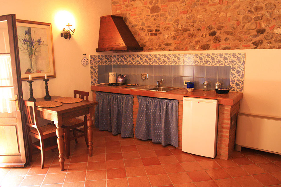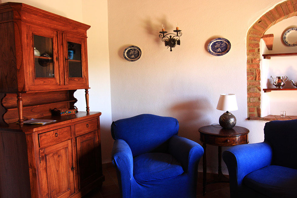 Appartamento sui toni del celeste, dalle piastrelle artigianali dell’angolo cottura fino ai tessuti d’arredo. Particolarmente fresco nei mesi estivi, è posto a piano terra, con grazioso soggiorno, angolo cottura e zona pranzo.