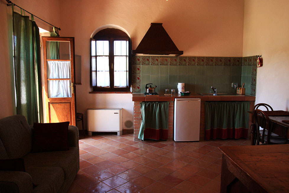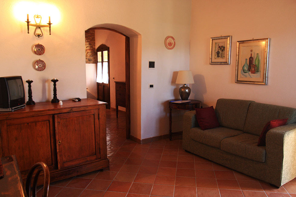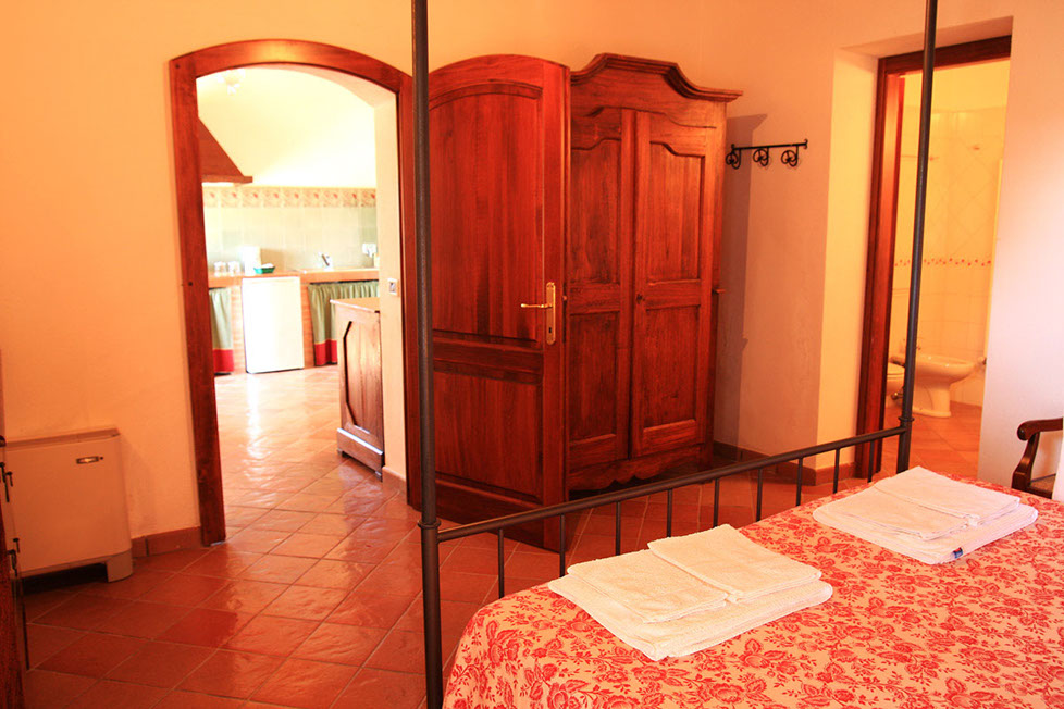 Appartamento a piano terra, composto da soggiorno con angolo cottura, zona pranzo, camera con letto a baldacchino e porta finestra che apre sul giardino. Bagno in camera con doccia.