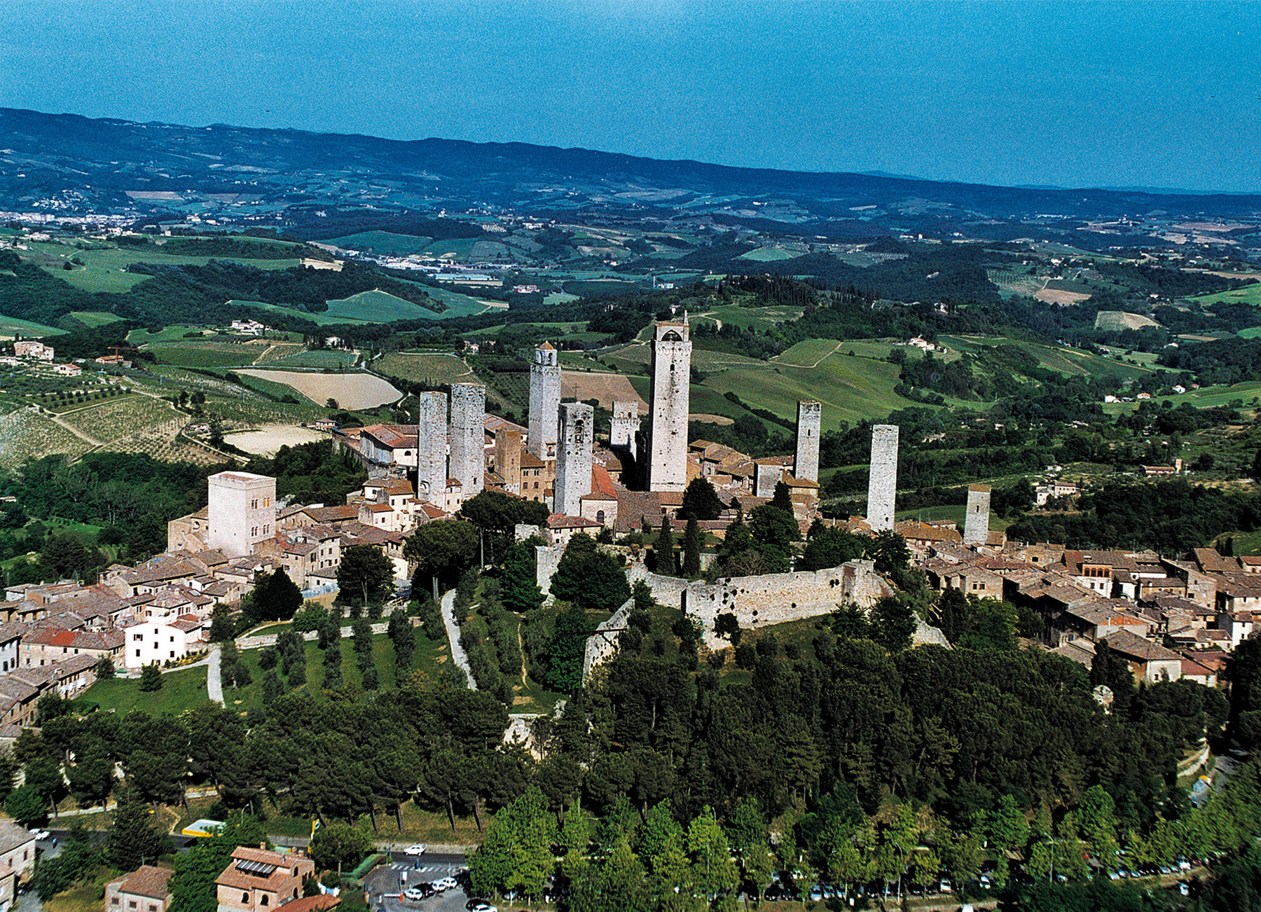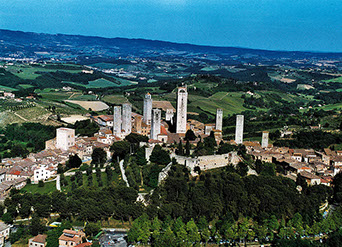 · A circa 36 km troviamo San Gimignano. Questo bellissimo borgo è famoso per le sue caratteristiche torri, i suoi vicoli ed i bei palazzi. Degni di nota sono anche gli affreschi della chiesa di Sant’ Agostino e della collegiata di Santa Maria, nonché il museo all’interno del Palazzo del Popolo.