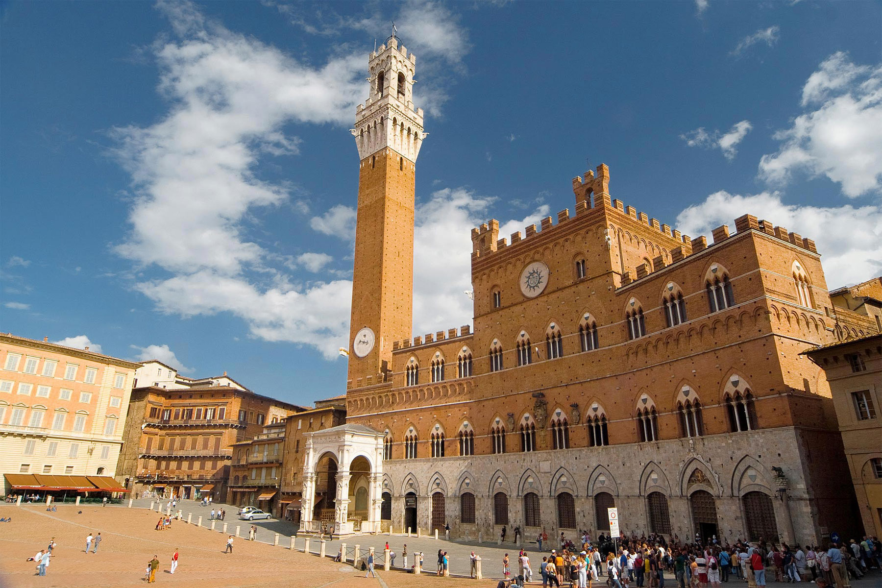 · A circa 76 km troviamo Siena, circondata dagli ulivi e dalle vigne del Chianti. Siena è una delle città più belle della Toscana. Sorta sulla cima di tre colli, la città è percorsa da ampi viali e stretti vicoli, che conducono al cuore della città, Piazza del Campo e a tutti gli altri edifici di richiamo culturale come il Duomo e lo Spedale di Santa Maria della Scala. Famosa per il Palio, la corsa storica a cavallo, che si tiene ogni anno il 2 di luglio ed il 16 di agosto, Siena è anche sede di una delle più antiche università d’Europa. Oltre alla vita quotidiana che anima tutti i giorni le strade e le piazze della città, Siena offre molti eventi culturali, concerti, cinema, teatri ed un’ampia gamma di attività sportive. Poche aree geografiche in tutto il mondo possono vantare un ambiente come quello che si trova intorno a Siena. A nord, si può apprezzare la ricchezza del paesaggio del Chianti, con le sue vigne ed i suoi oliveti ed i piccoli paesi che si trovano in questa zona, come San Gimignano e Monteriggioni con le loro mura di cinta, i tornanti che li avvolgono e la stupenda vista che offrono. A sud di Siena, la valle dell’Arbia conduce alla città collinare di Montalcino, sede di produzione del famoso Brunello, inoltre la zone de Le Crete offre ai suoi visitatori lo spettacolo di un unico paesaggio, con le sue aspre formazioni rocciose. Andando verso ovest ci si avvicina al mare, ai paesi costieri, come ad esempio Castiglione della Pescaia, e alla riserva naturale della Maremma. Con le sue bellezze naturali ed artistiche, Siena è facilmente raggiungibile sia in macchina.