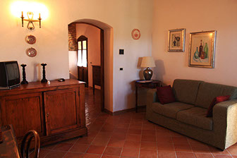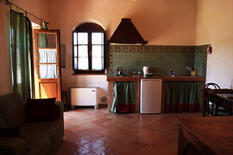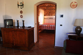 Appartamento a piano terra, composto da soggiorno con angolo cottura, zona pranzo, camera con letto a baldacchino e porta finestra che apre sul giardino. Bagno in camera con doccia.