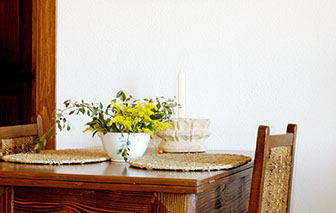 Apartment on the ground floor with cross vaulted ceilings, living-room with double sofa bed, dining and cooking area, canopy double bed-room, shower bath-room.