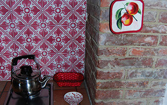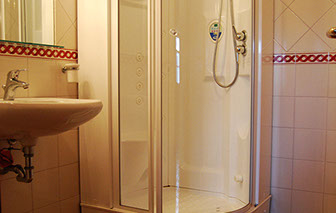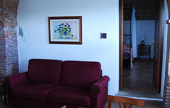 Apartment on the ground floor looking towards the garden and the pool: living-room with double sofa bed, dining and cooking area, canopy double bed-room, shower bath-room.