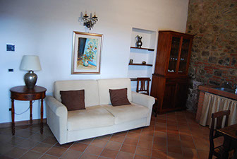 È composto da un grande soggiorno, caratterizzato da antiche volte a crociera e da una intera parete in pietra di fiume, con divano letto doppio, angolo cottura e zona pranzo. Dalla camera matrimoniale, con letto a baldacchino, si accede al bagno con cabina doccia.